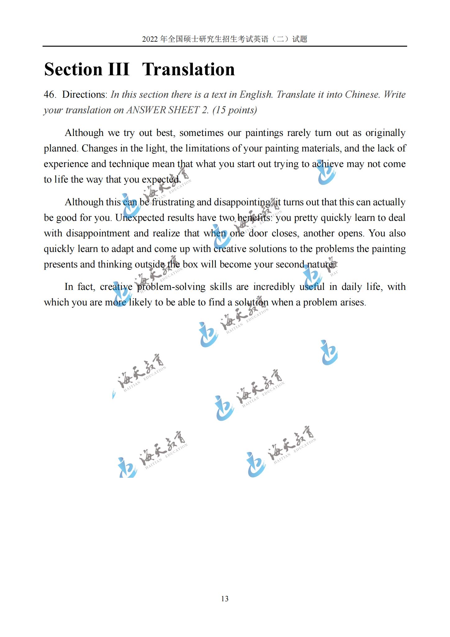 22考研英语考试结束,海天考研整理发布【2022考研真题解析专题】,可以查看22考研英语真题,答案。更多22考研政治真题及答案、22考研数学一真题及答案、22考研数学二真题及答案、22考研数学三真题及答案,请持续关注【2022考研真题解析专题】!